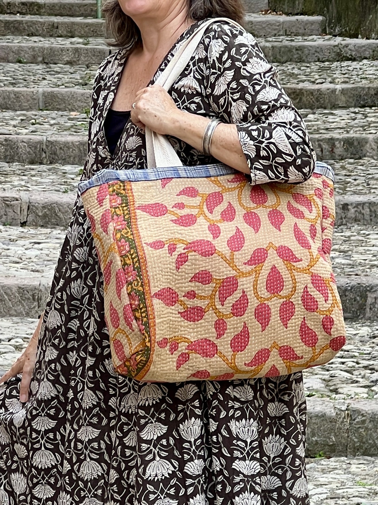 Avec son format généreux et son tissu coloré , ce cabas est à la fois pratique, élégant et éthique.