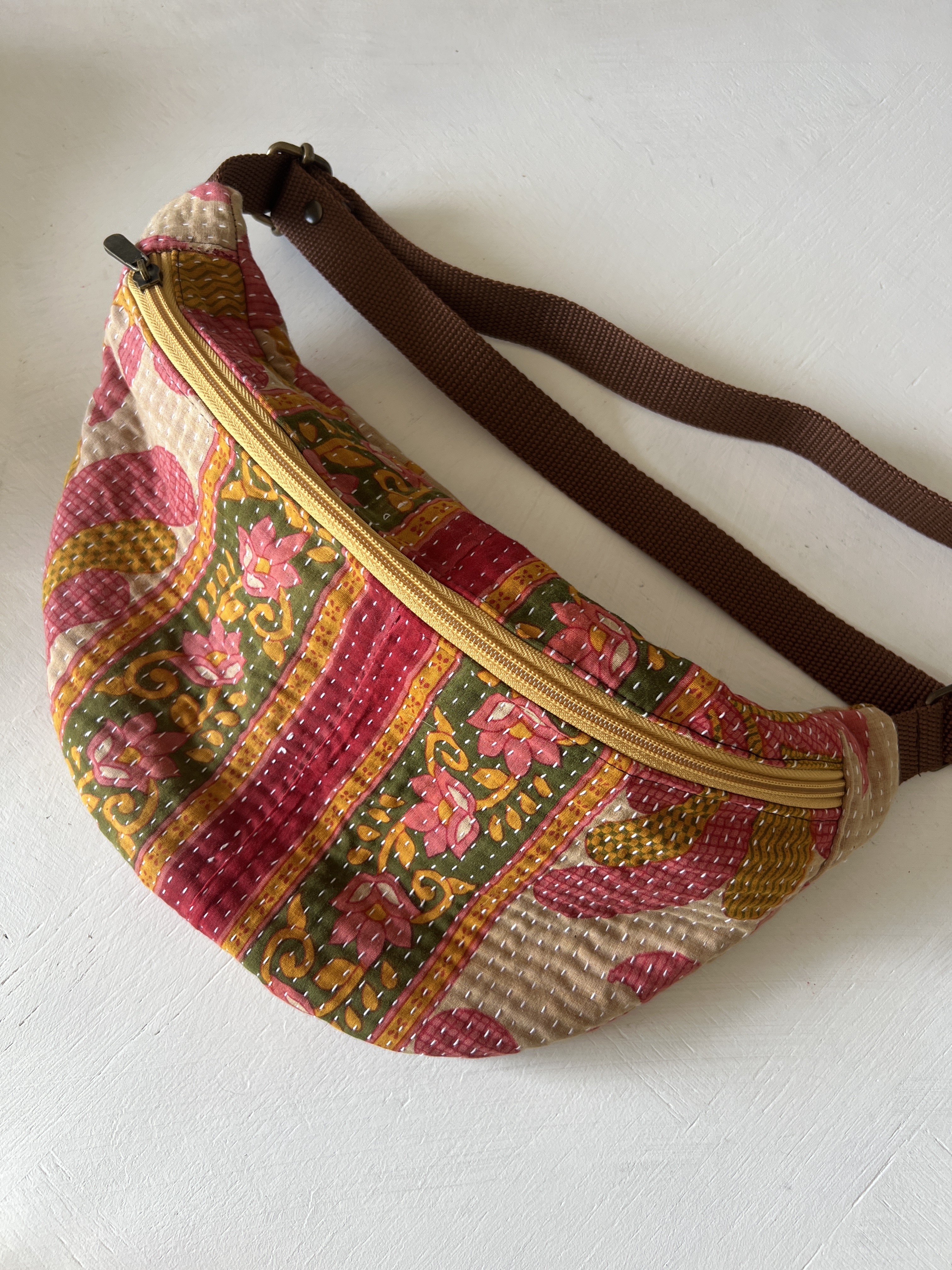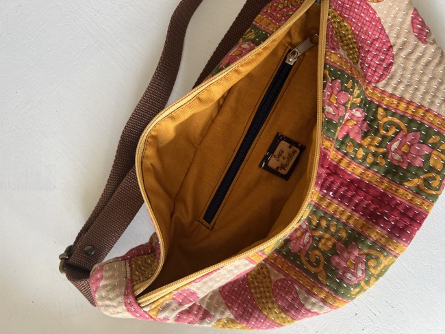Découvrez notre sac banane artisanal, confectionné à la main à partir de textiles kantha vintage soigneusement sélectionnés.