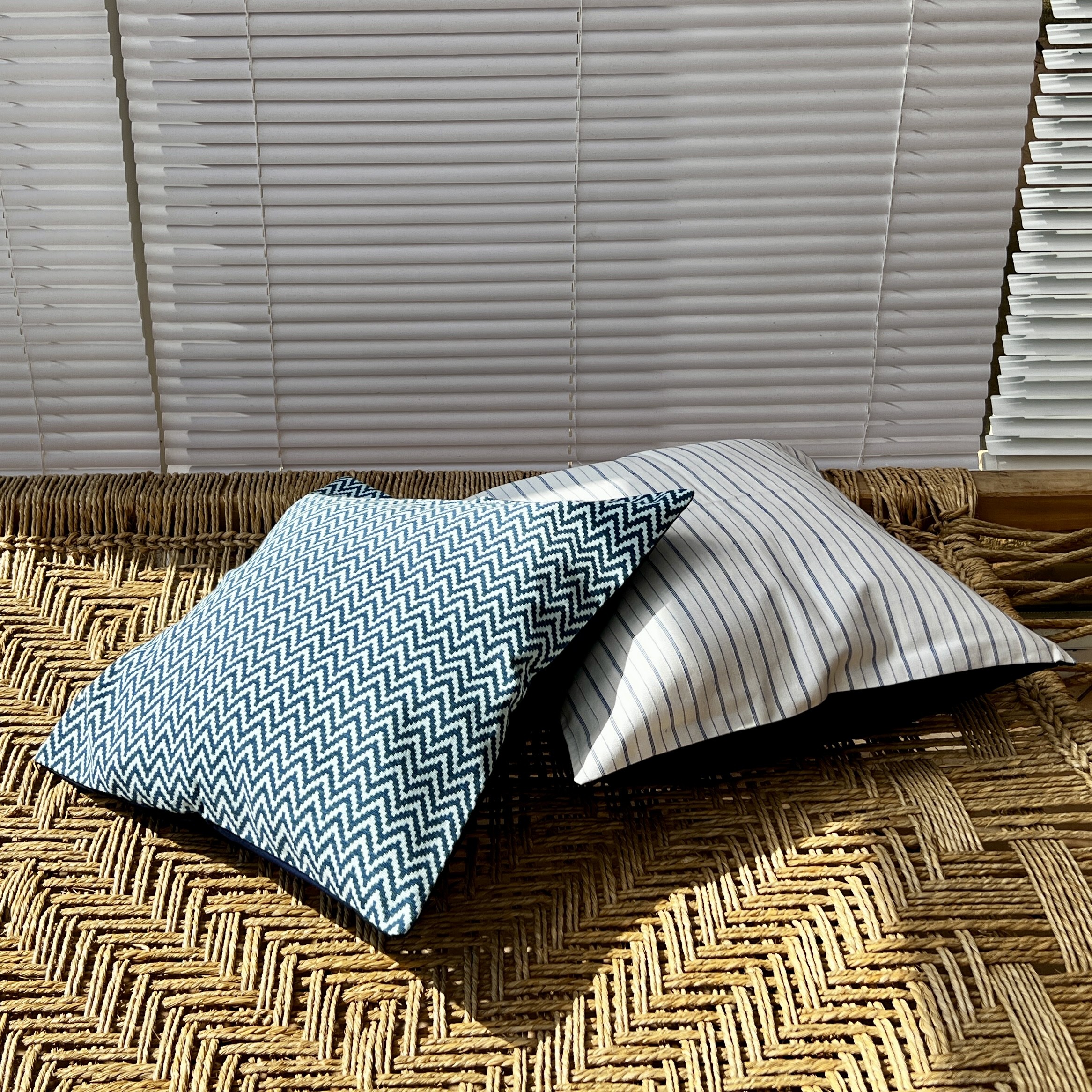 Housses de coussins en coton tissé main et teinture naturelle bleu indigo