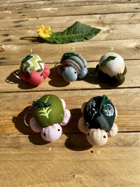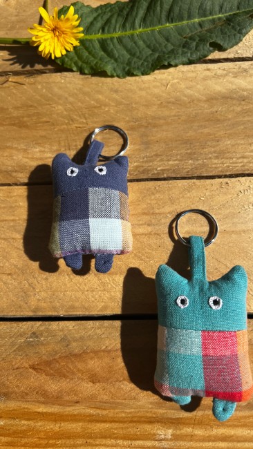 Ces porte-clés sont confectionnés à la main à partir de chutes de tissu dans un atelier de confection en Inde