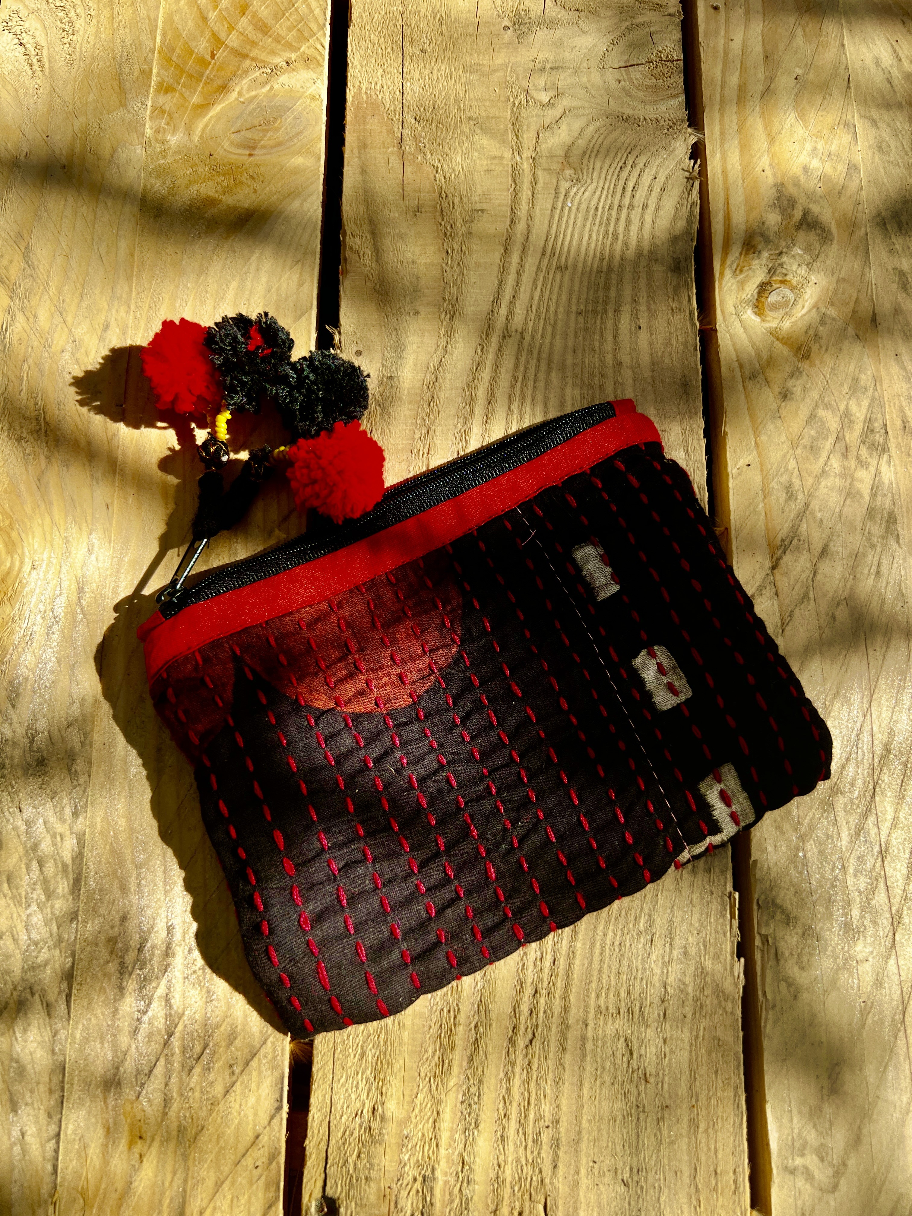 Laisse-toi séduire par cette pochette colorée, confectionnée à partir de khanta vintage, un textile traditionnel indien chargé d’histoire.