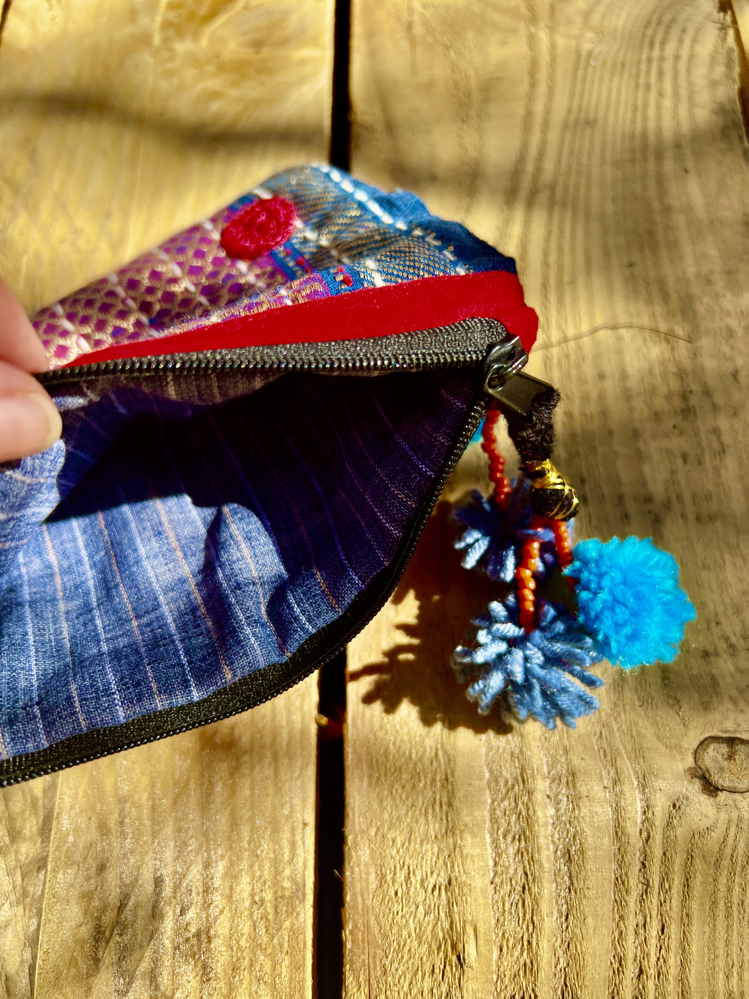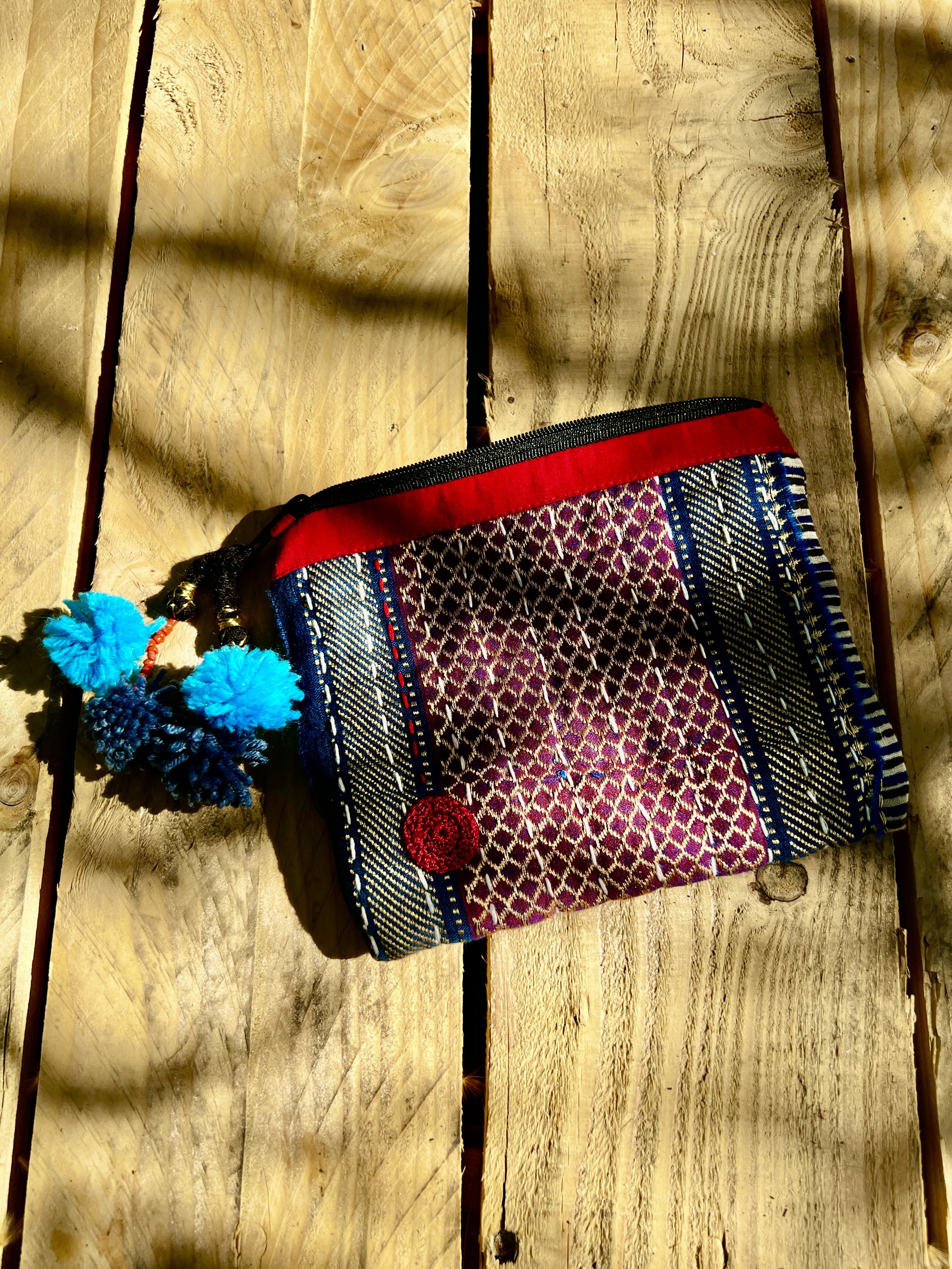 Laisse-toi séduire par cette pochette colorée, confectionnée à partir de khanta vintage, un textile traditionnel indien chargé d’histoire.